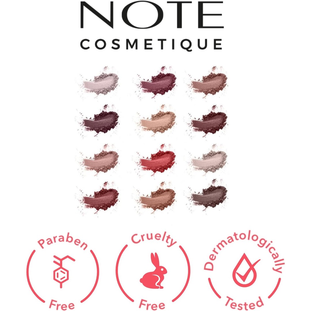 Note Love At First Sight eyeshadow delivers an explosion of colour that lasts thanks to the strong adherence of pigments and pearls. This 12 pan colour palette contains three finishes: 4x Matte, 4x Satin and 4x Metal to dress up your mood. Rich in pigments for high colour pay off. It’s special texture makes this eyeshadow feel creamy and smooth on the skin, provides instant coverage and blends easily. Can be used wet for better colour payoff.