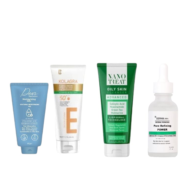oily skin offer ( Nano Treat Oily cleanser +Derma 10 niacinamide + kolagra sunscreen gel + Dear Gel 60g)